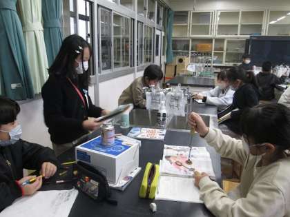 4年4組は、理科「ものの温度と体積」の学習です。今日は、ガスコンロ(カセットコンロです。)を使ってものを温める実験をします。まずは、ガスコンロの使い方から学んでいきました。「お鍋で使う」「うちは電気(IH)のだよ」と身近な話題も出ていました。