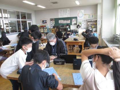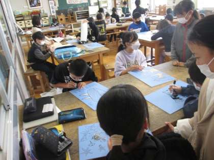 6年1組は、図工「版画」の学習です。「アウトラインから丁寧に」ということを意識しながら、コツコツと掘り進めています。