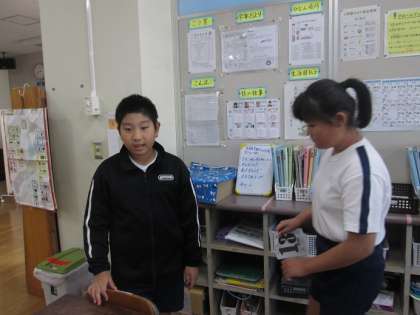 なかよし2組も朝の会です。自分の役割をしっかりと行っています。