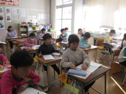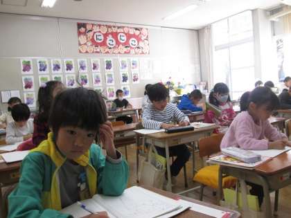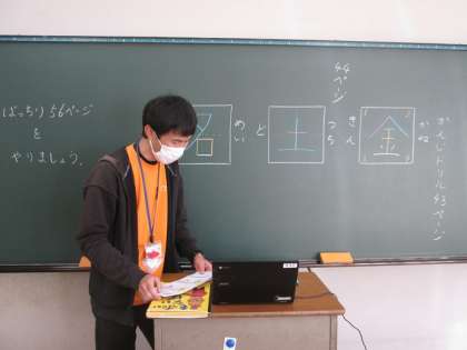 1年2組はリモートで国語の漢字ドリルを使って、新出漢字の学習をしています。