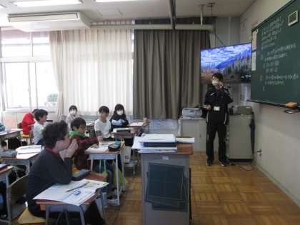 4年1組は、算数「式と計算」の学習です。友達の考えに「同じです」と反応しながら、授業が進んでいきました。