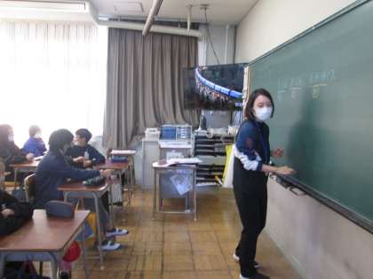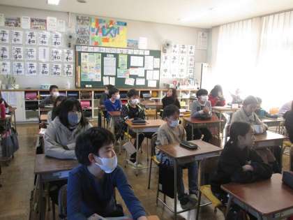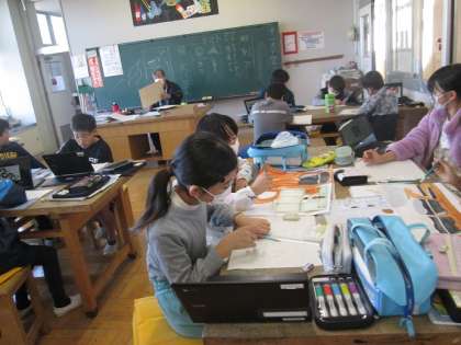 5年3組は算数「割合」の学習です。「もとにする数」「比べられる数」「割合」がそれぞれどの数字なのかを確認していました。とっても大事なところですね。