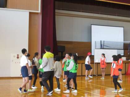 6年1組は体育「バスケットボール」の学習です。チームで試合形式で練習をしていました。協力しながら競い合ってほしいと思います。