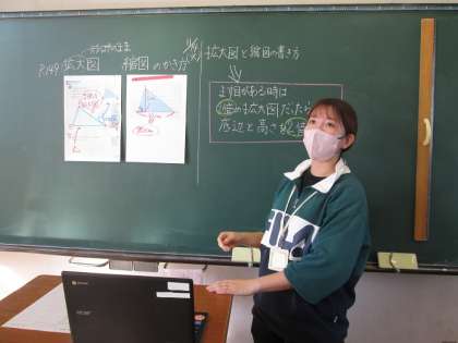6年2組はリモートで算数の学習を行いました。拡大図と縮図の学習を行いました。