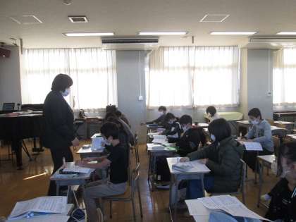 6年3組は、音楽の学習です。ビリーブの練習をした後、新しく「生命のいぶき」の楽譜が配布されました。