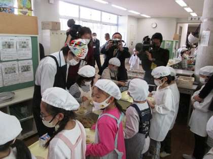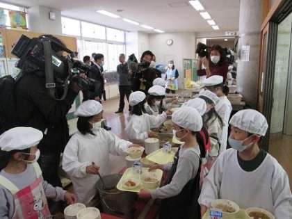 テレビ局の方が、炊き込みレタスチャーハンの配膳の様子を撮影していました。