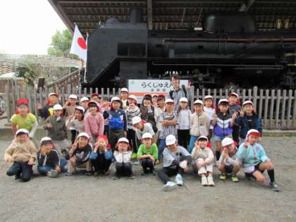 2年生は楽寿園に到着しました。クラスごとSLの前で記念撮影です。