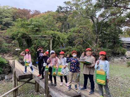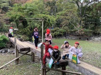 楽寿園内を散策しています。「楽寿園に初めて来たよ!」「楽しいね。」みんなでいろいろな話をしながら活動しています。