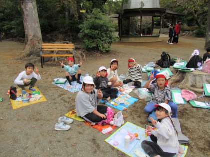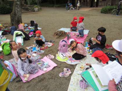 食事の時間です。ご家庭で用意していただいたお弁当をおいしくいただいています。
