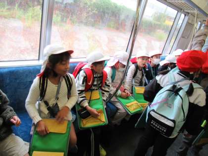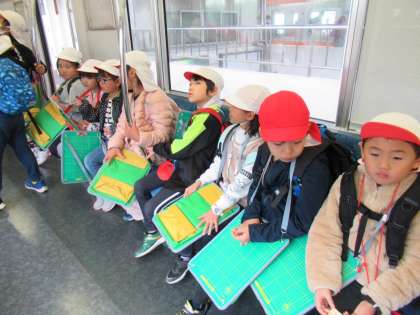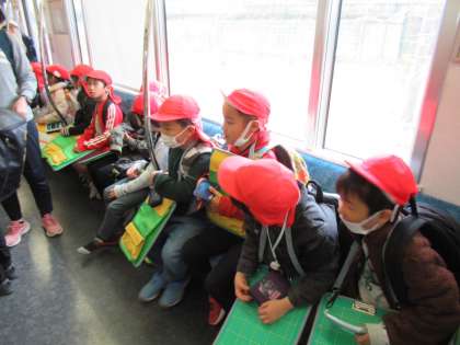 電車の中での様子です。みんなマナーを守って、静かに過ごしていました。