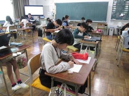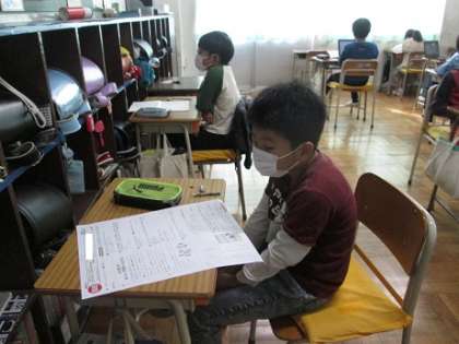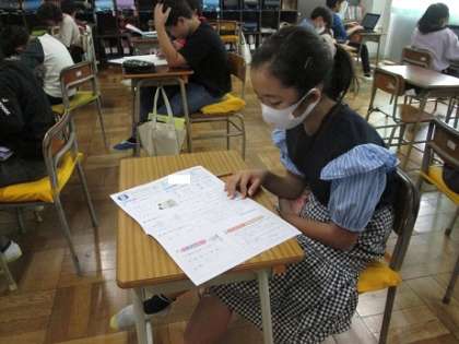 4年生は国語で「クラブのしょうかいチラシを作ろう」という単元を学習しています。単元のまとめとして振り返りのテストを行っていました。