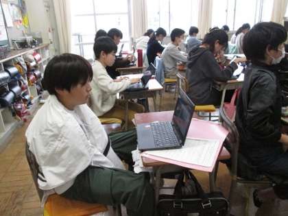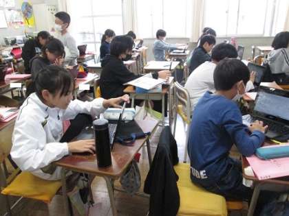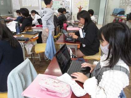 5年生は総合的な学習において福祉学習を進めていました。今後、「みんなに優しい町」にするためにはどうすればよいのか、自分なりに考え方策をプレゼンテーションソフトにまとめました。
