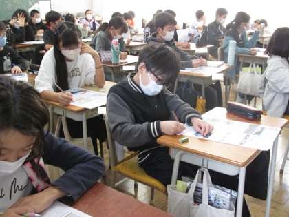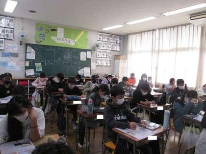 6年生は「土地のつくりと変化」という単元を学習しています。振り返りとして単元のまとめテストを行いました。