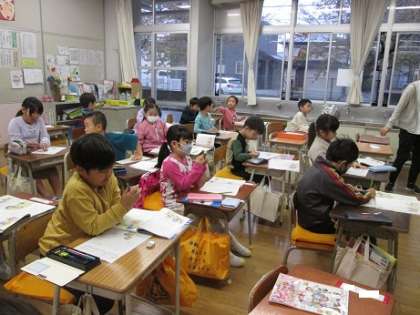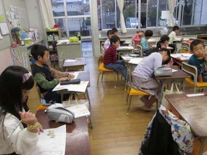 1年生は国語で「はじめは『や!』」の学習を行っています。読みながら、どんな登場人物が出てくるのかを確認しています。積極的に発表しています。