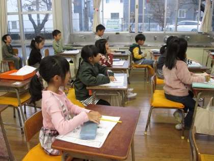 1年生は国語で「言葉のいずみ 日付と曜日」について学習しています。4月4日は「しがつ よっか」と読むことを確認し、数字にもいろいろな読み方をすることが分かりました。