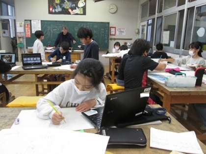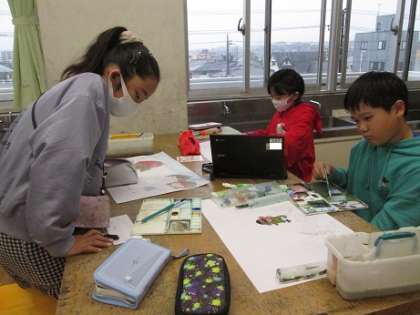 4年生は図工で「思い出の絵」を題材に学習を進めています。それぞれが集中して作品制作に取り組んでいました。