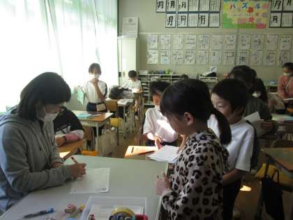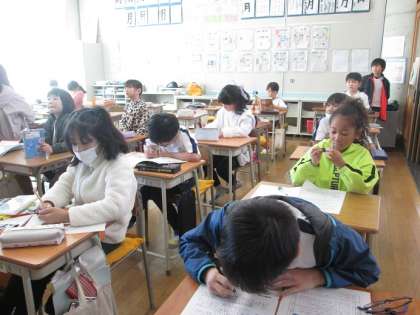 3年4組は総合の学習です。明日の消防署見学の確認、前回見学したお店へのお礼のお手紙などに取り組んでいました。