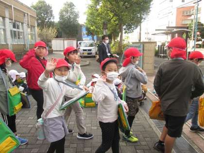 今日は3年生の消防署見学があります。1,2時間目は1,2組が見学します。早速、朝一番に出発していきました。みんな、目がキラキラと輝いていました。