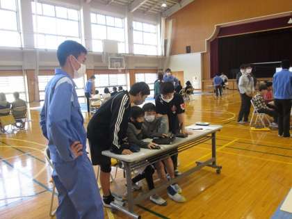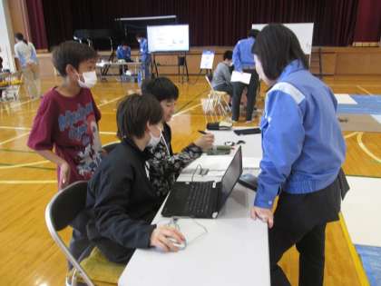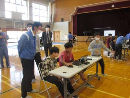 6年2組、明電舎さんとのコラボプログラミング学習の様子です。グループでどのような高さ、コースを飛行させるかを協力して考えています。みんな、夢中で取り組んでいます。