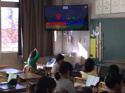 算数を行っているクラスは、クイズアプリを使ってかけ算九九の確認をしていました。