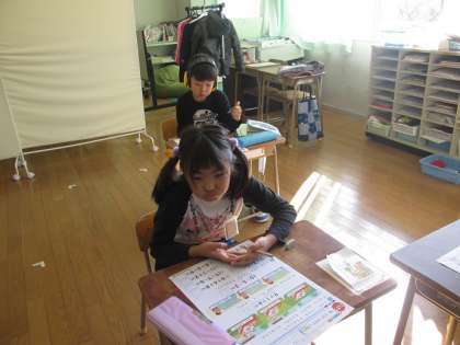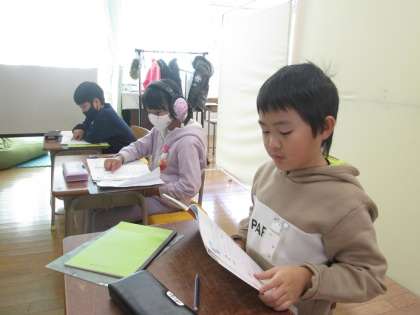 なかよし4組は算数のテスト、算数の「小数のしくみ」について、学習していました。教科書も姿勢良く読んでいます。