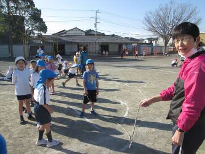長縄もリズミカルに跳んでいきます。苦手な子も、だんだんできるようになるから心配しなくていいですよ。