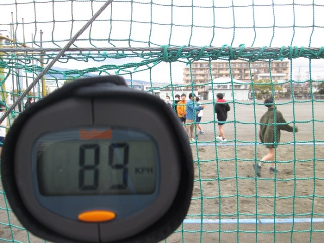 6年2組は外で体育です。なわとび運動とティーボールでした。沼津教育振興課体育部会で購入したスピードガン(市内小中学校で共有するもの)が金岡小に届いていましたので、ティーボールのボールを投げてもらいました。すると89km/hとの表示。すごいですね。大谷翔平選手が硬球で163km/hですからその速さは怖いくらいですね。