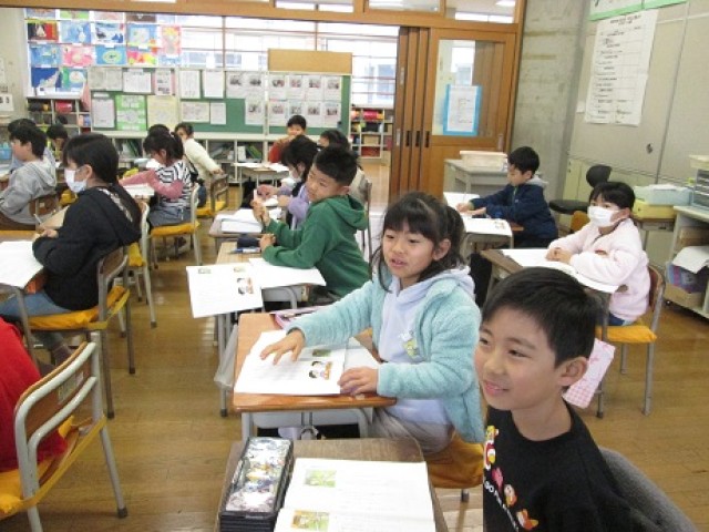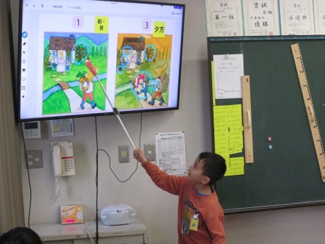 2年2組は国語で「何があったかな」という教材を学習しています。1と2の場面を比較し、時間が移り変わるなど、どのような状態になったのかを話し合いました。