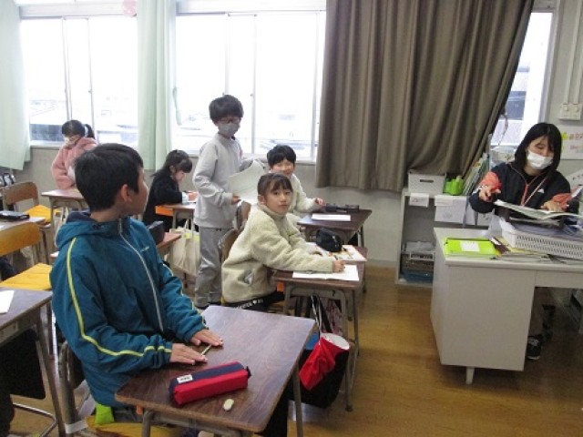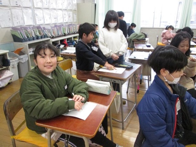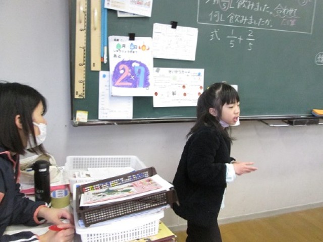 3年1組は算数で「分数」について学習しています。分数の足し算はどのようにするのか演習問題を解きながら理解を深めました。