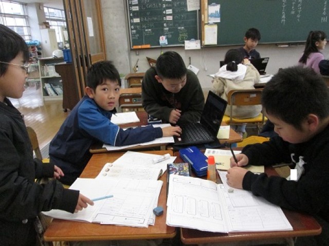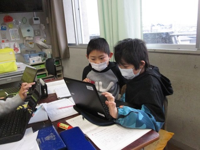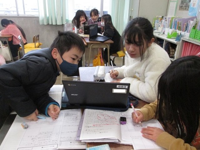 3年2組は国語で「遊びをくらべよう」という教材を学習しています。今と昔の遊びについて取材したことを学習プリントにまとめました。またクロームブックを使って補足事項を追記しました。