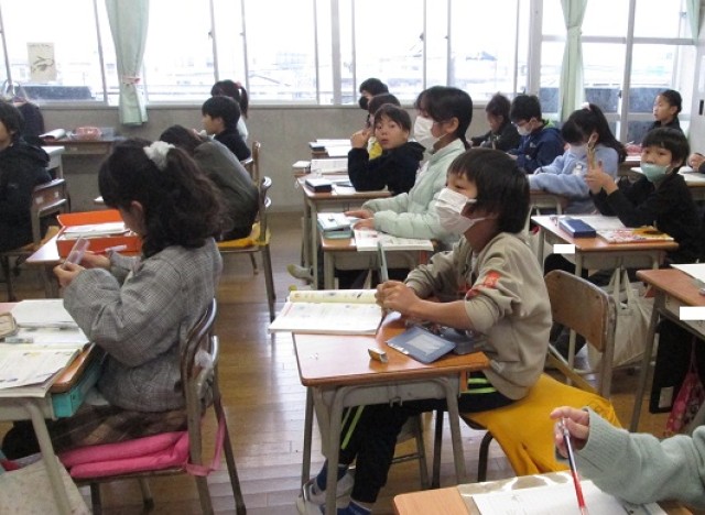 3年4組は理科で「ものの重さ」について学習しています。ものを分けても重さは元の重さと変わらないことを検証実験をとおして理解しました。