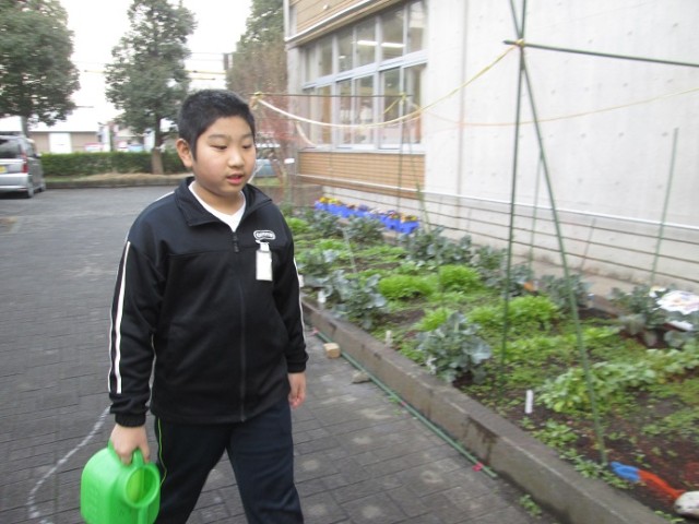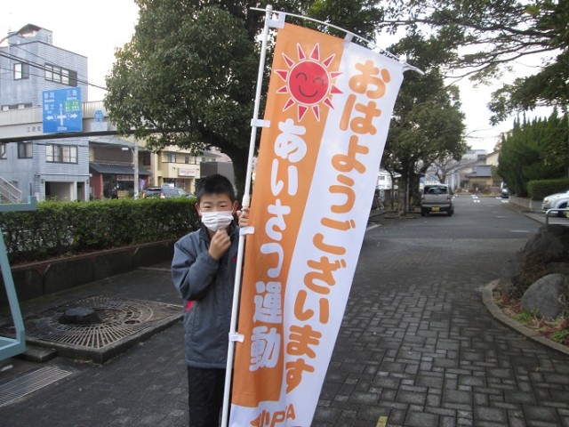 なかよしの子達は、学年菜園の手入れをしています。委員会の子達は、あいさつ運動ののぼりをもって、積極的にあいさつをしています。