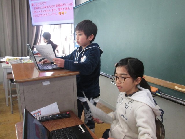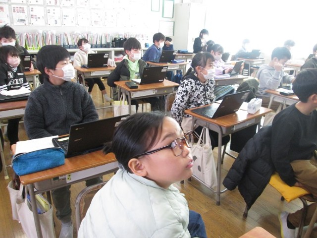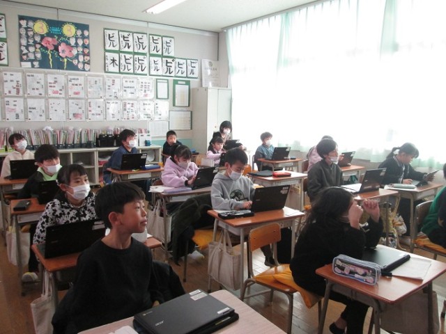 3年3組は、総合学習「金岡の宝」の発表リハーサルです。スライドも上手にできています。今日の参観日で披露します。ドキドキ、わくわくですね。