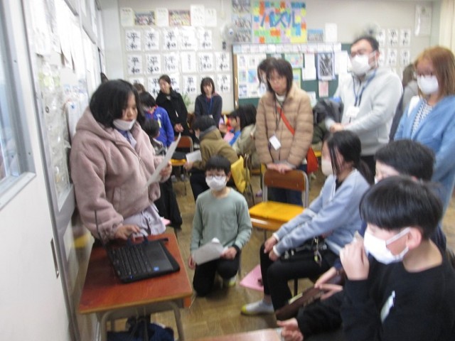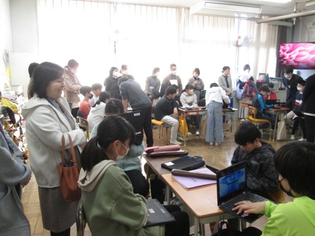 5年生は全クラス総合学習「福祉」の発表です。子供たちが調べたユニバーサルデザイン、盲導犬、手話や点字、バリアフリーなどなどChromebookでまとめています。プレゼンの時間、内容の要約、話し方など高学年はさらにレベルが上がってきています。また、それを微笑みながら見守っていただいた保護者の方々にも感謝申し上げます。子供たちには、緊張感の中にもやりきった表情が見られたと思います。