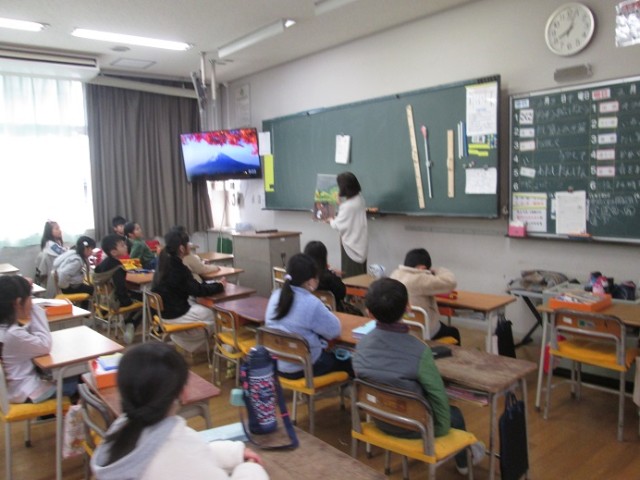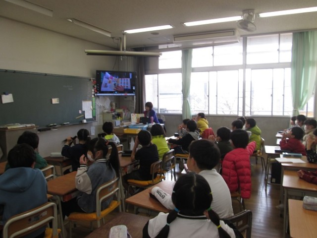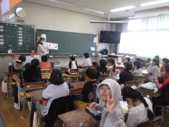 2年生の読み聞かせの様子です。3組は担任の先生の読み聞かせです。どんなお話だったかな。