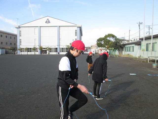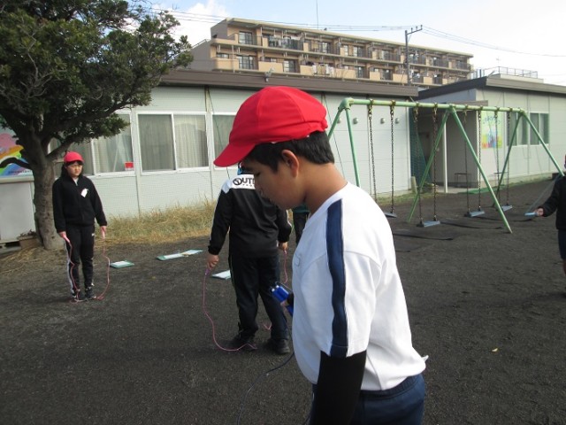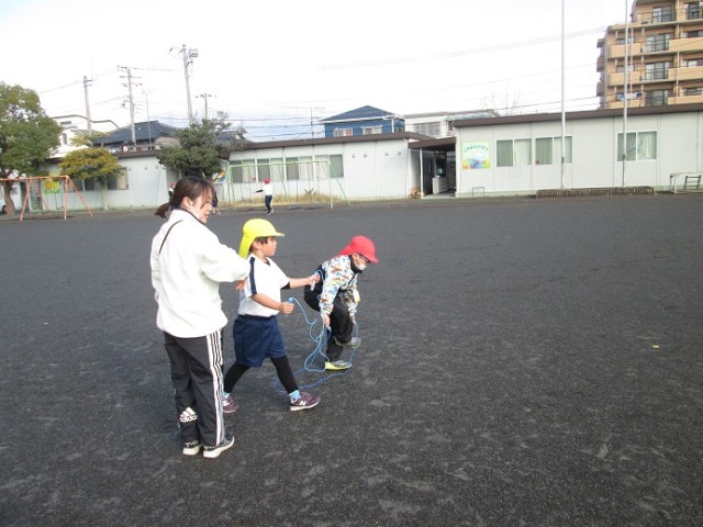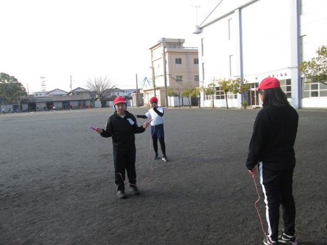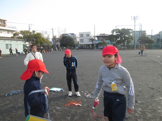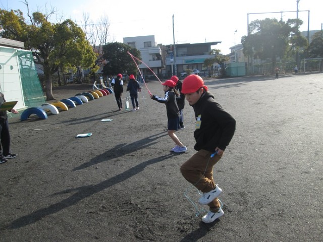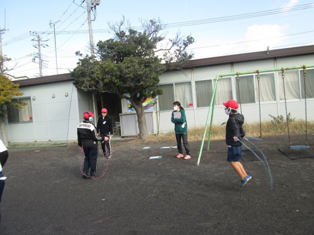 なかよし1,2,3組は外で体育です。縄跳び運動に取り組んでいます。寒さに負けず、一生懸命練習し、リズミカルに跳ぶ子が多くなっています。