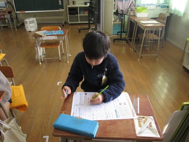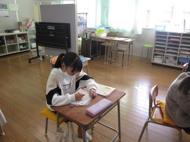 なかよし4組では、それぞれの学習進度に応じて、ローマ字の学習、漢字テストなどに取り組んでいました。じっくり落ち着いた雰囲気の中で学習していました。