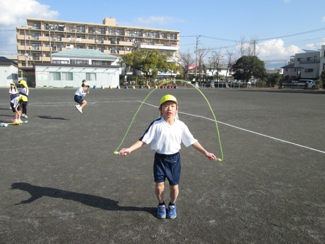 1年3組も体育「縄跳び運動」です。ここでも先生にチェックしてもらっています。積極的にチャレンジしています。「ねえ!見てて!はやぶさが1回できるようになったよ」とうれしそうに見せてくれる子もいました。1年生で「はやぶさ」とはすごい!