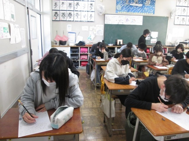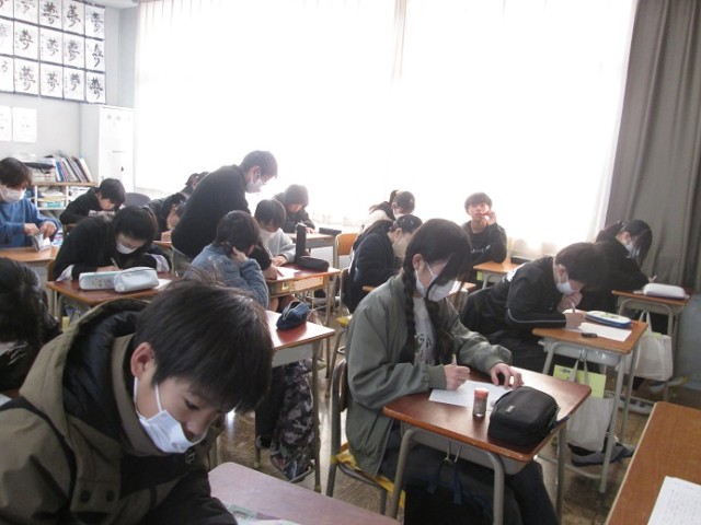 6年2組は書写硬筆です。福沢諭吉の「学問のすすめ」の一節を丁寧に書いています。集中して取り組んでいます。