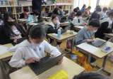 4年生は、早押しクイズをしていました。How many...? Where is this?等、イラストを見ながら考え、回答していました。