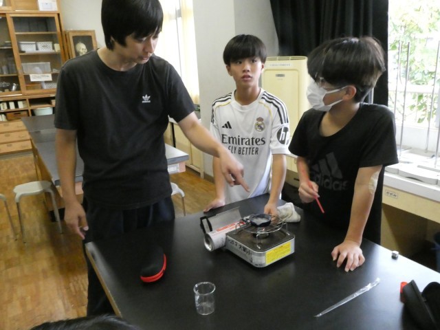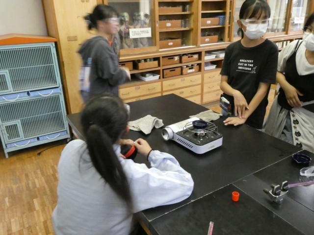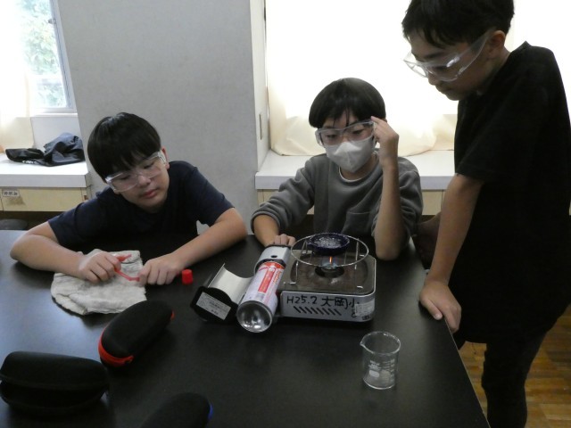 水溶液の学習です。無色透明な水溶液、何が溶けているのか確かめています。