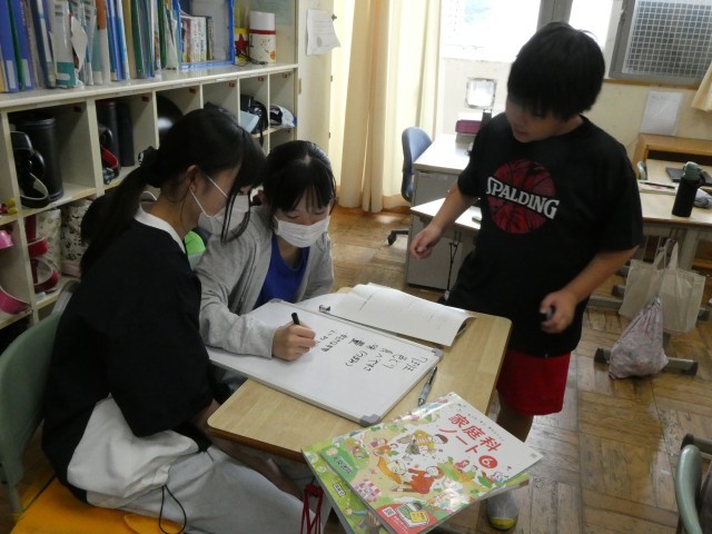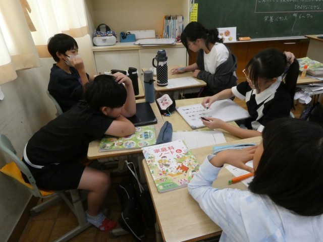 一食分の献立を立てる学習です。家族の誰かのための○○定食をつくるために、どんなことを考えていけばよいか話し合いました。