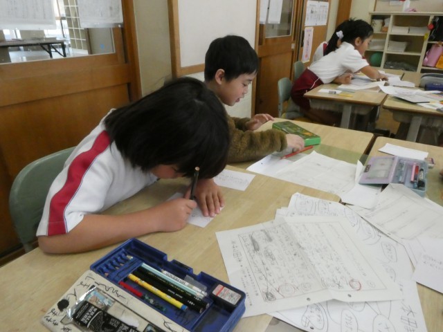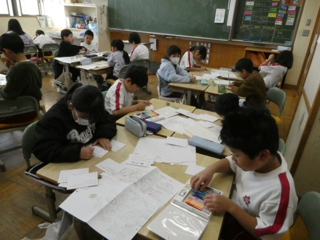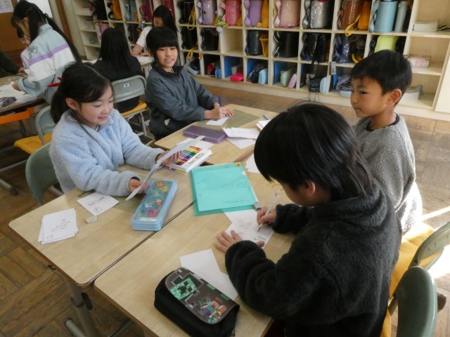もうすぐ2年生になる1年生のために作っている「2年生かるた」が完成に近づいてきました。作り進めていくうちに、役割分担をしたり協力をしたりする姿が見られるようになりました。