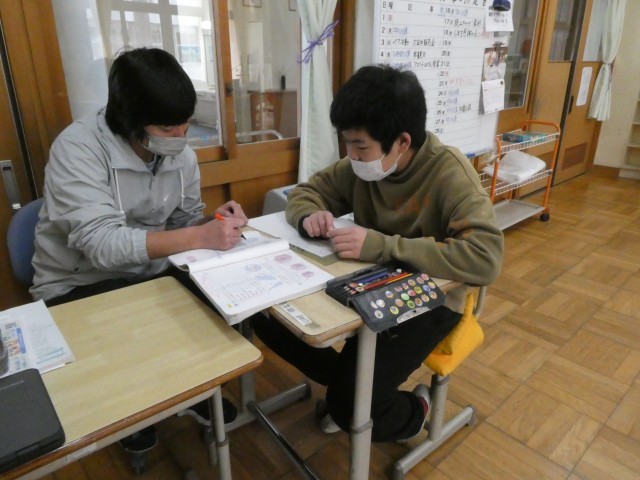 英語のテストが終わった子から、学びを確かめるプリントに取り組んでいました。