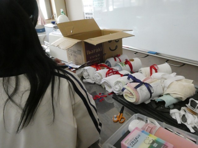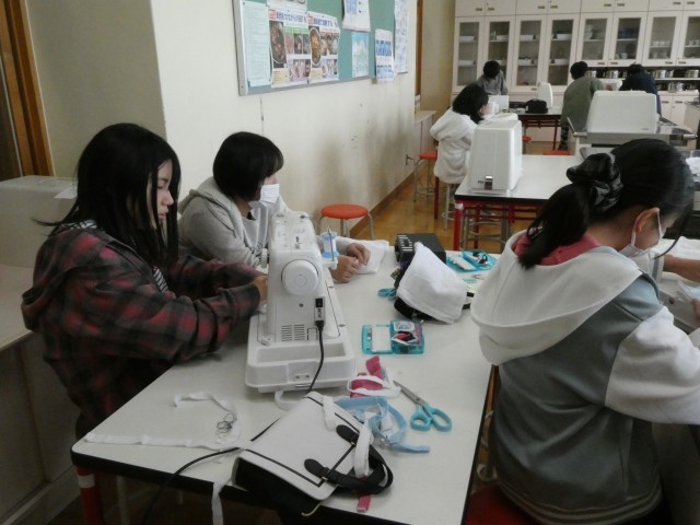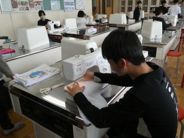 卒業していく6年生、各学級へのプレゼントとして雑巾を縫っています。