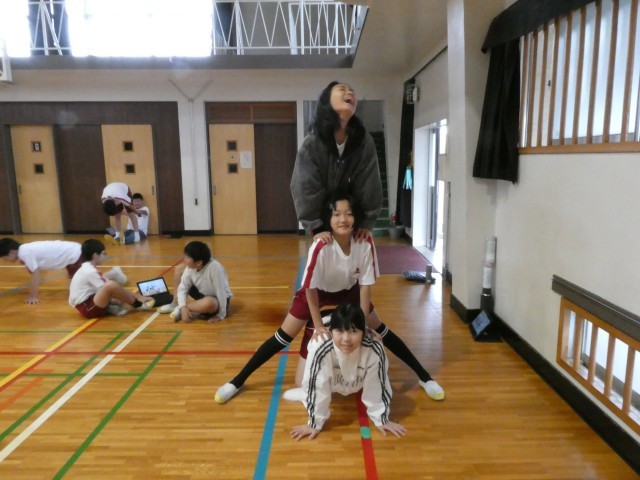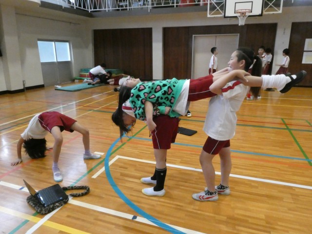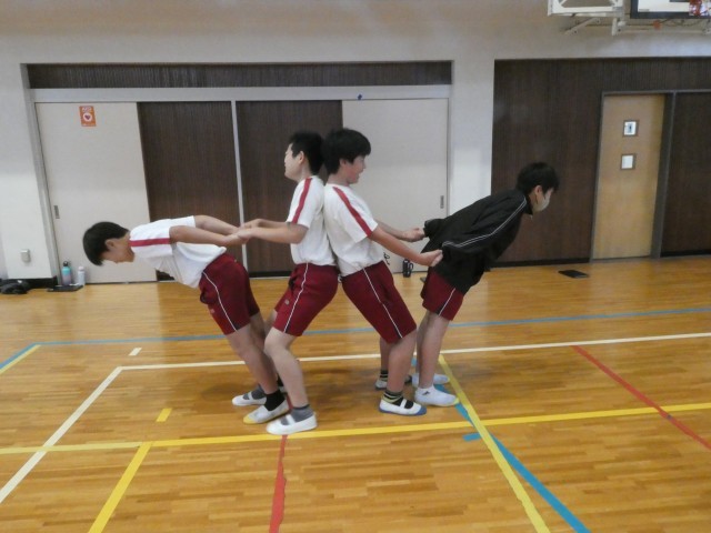 4人技は、自分たちで選んだ技を練習して披露します。4人で息を合わせてかっこよくポーズを決められるように頑張れ!