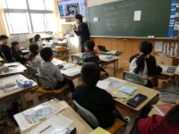 日陰と日向の温度の違いを調べました。温度計を使うのも初めてです。丁寧に扱うことができていました。