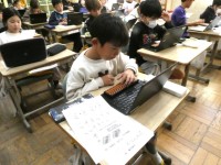 「麦」の清書をして、はじめに書いたものと並べて写真を撮って作品集作りをしています。スタートとゴールを並べてみると、とても上手になっているのが分かります。