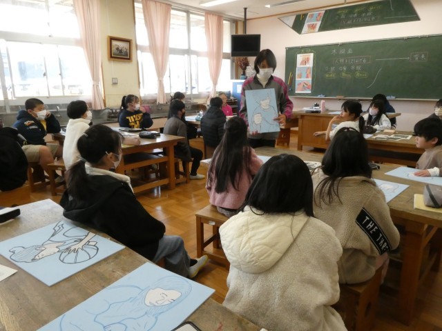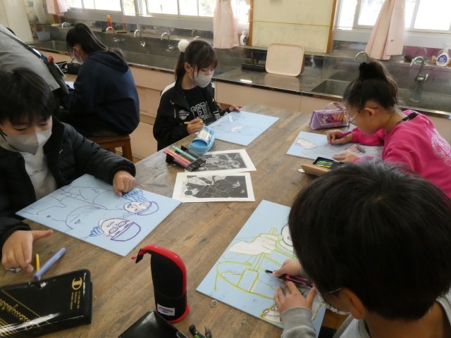 版画を彫り進めています。授業の後半、試し刷りをした子もいました。丁寧に彫った部分が白く浮き出ていい感じです。