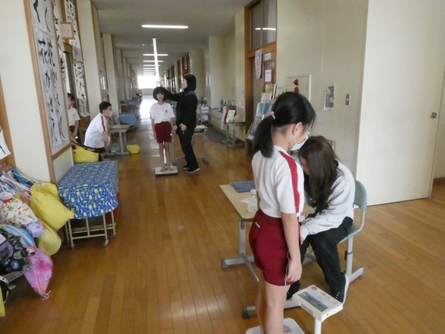 身体計測の前の保健指導では、排便の大切さを学びました。出席番号順に身長と体重を測定している間に、保健指導で分かったことや考えたことを記入しています。